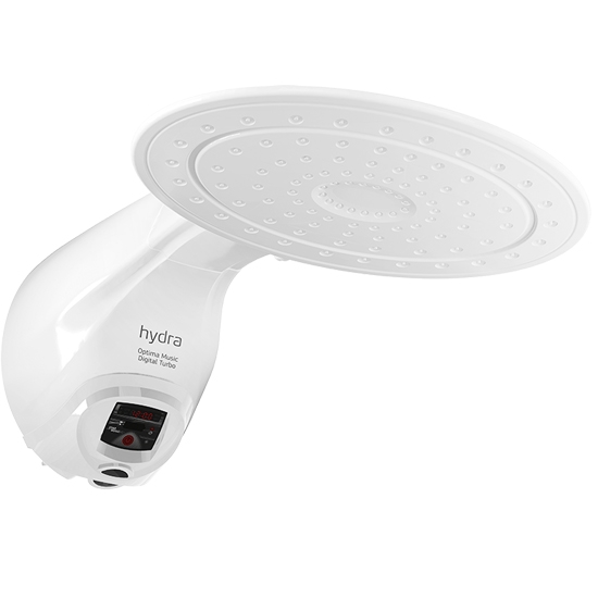 A Ducha Digital da Hydra Corona, modelo Optima Music Turbo, usa sistema de temperatura gradual que permite, por meio de regulagem da haste, selecionar a temperatura ideal da água. Ela apresenta também pressurizador para maior pressão, espalhador com formato específico para a água cair sobre todo o corpo, de ombro a ombro, e baby ducha com jato direcionável para dar banho em crianças.