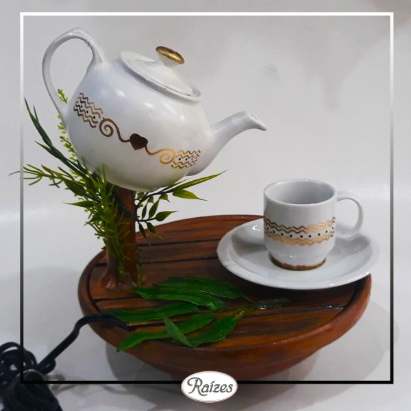 Produto confeccionado em Cerâmica e Madeira. Por ser produto artesanal há variação no formato da fonte. Uma Ótima opção para decorar, proteger, Perfumar e Umidificar o ambiente.
