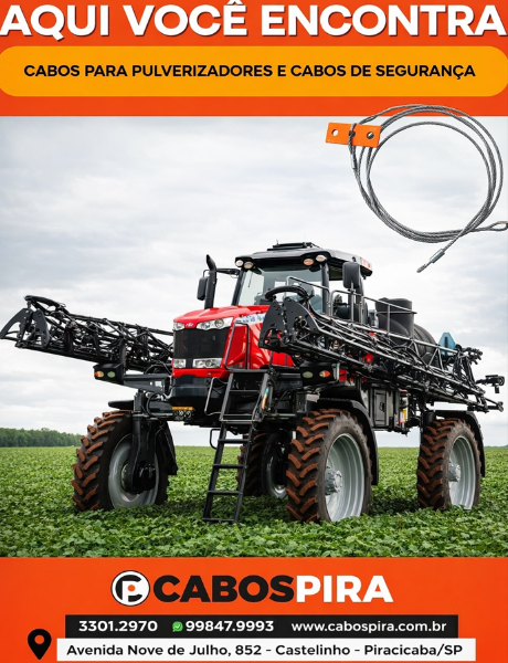 Cabo de aço revestido de alta resistência, utilizado como protetor de fim de curso da mola nos pulverizadores Jacto Advance 2000, Advance 3000 e Columbia 2000.